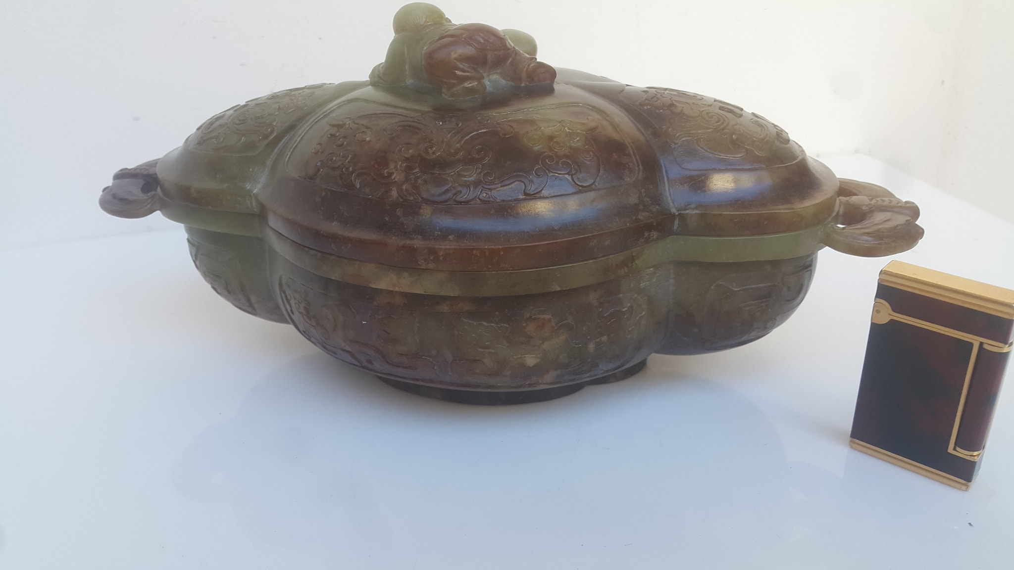 唐代、、帶蓋玉盒、、和田青玉
