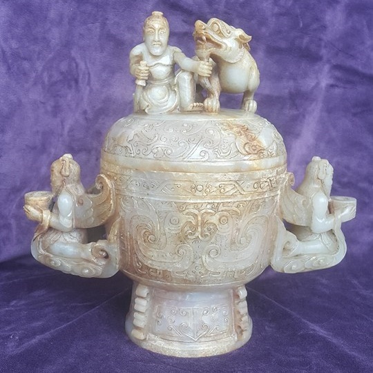 北宋-仙人雙耳帶龍道人玉罍-白玉
