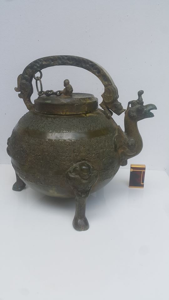 春秋、鳳紋禽獸神人三足盉、青銅器