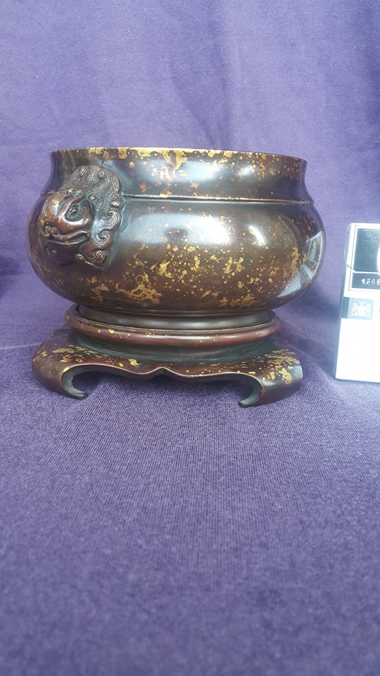 清、、天雞双耳灑金炉、、落款、乾隆年制