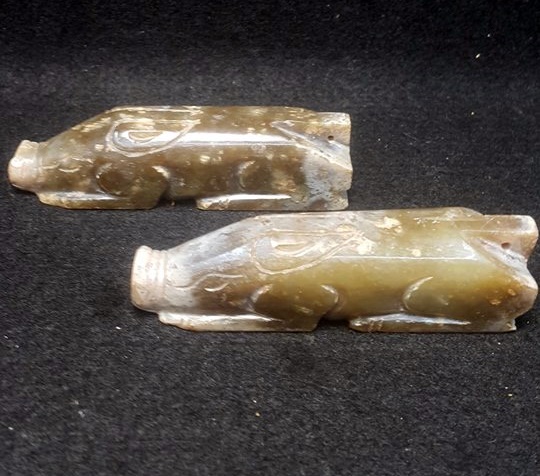 明代--雌雄獸面帶扣--白玉