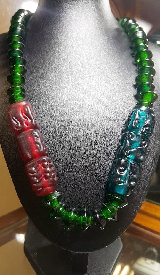 漢代寶綠琉璃珠-寶紅、藍、琮型流璃器
