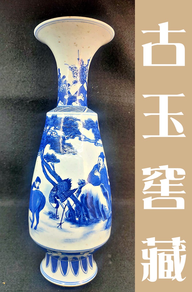 青花人物山水紋花觚-明萬曆
