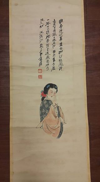 清、觀音畫像、宮延畫家。丁觀鹏大師畫作、寬60高13O
