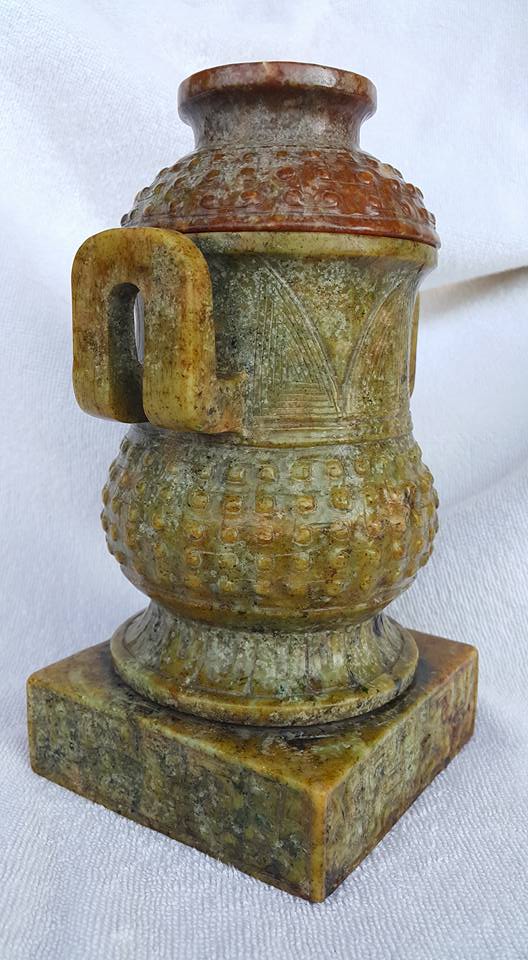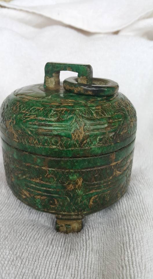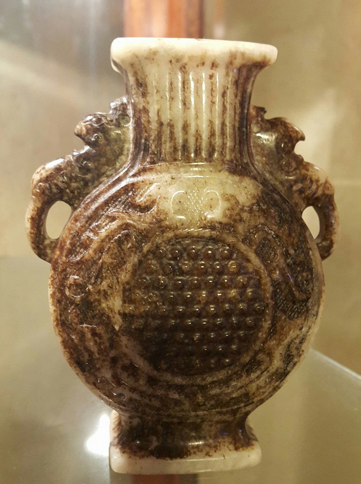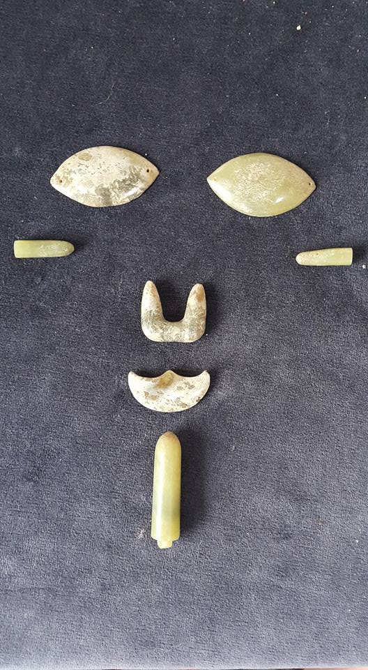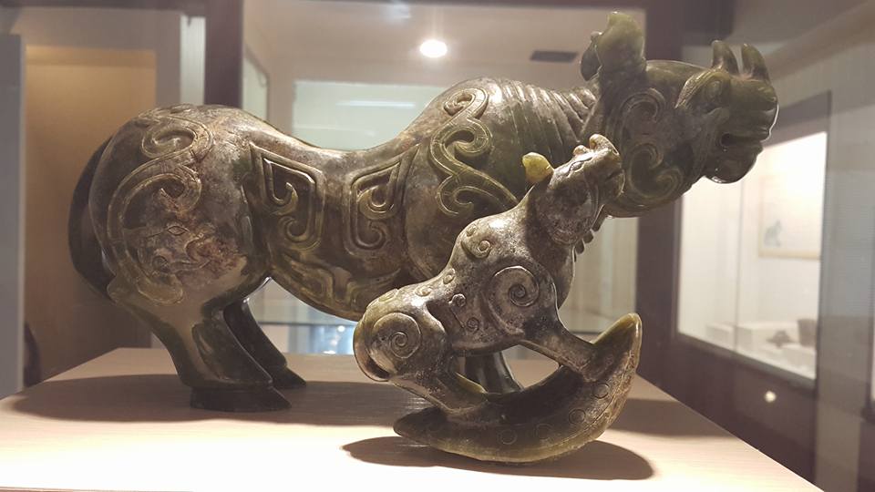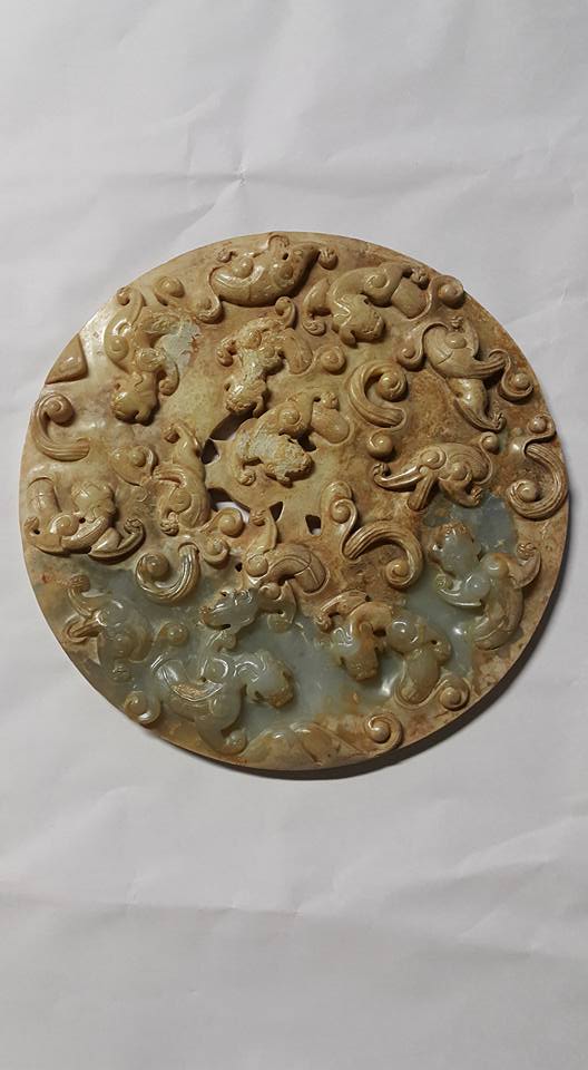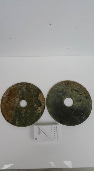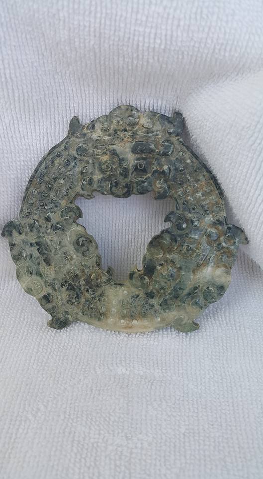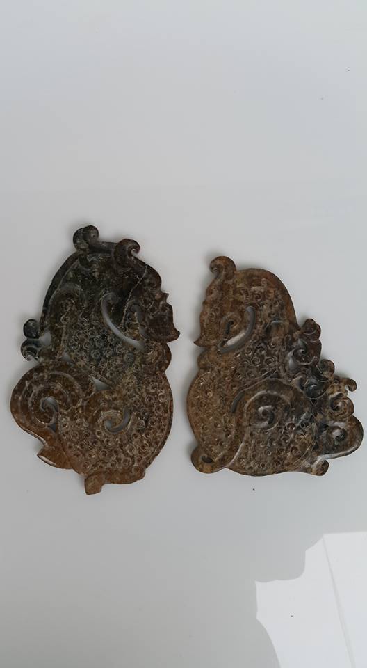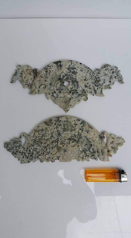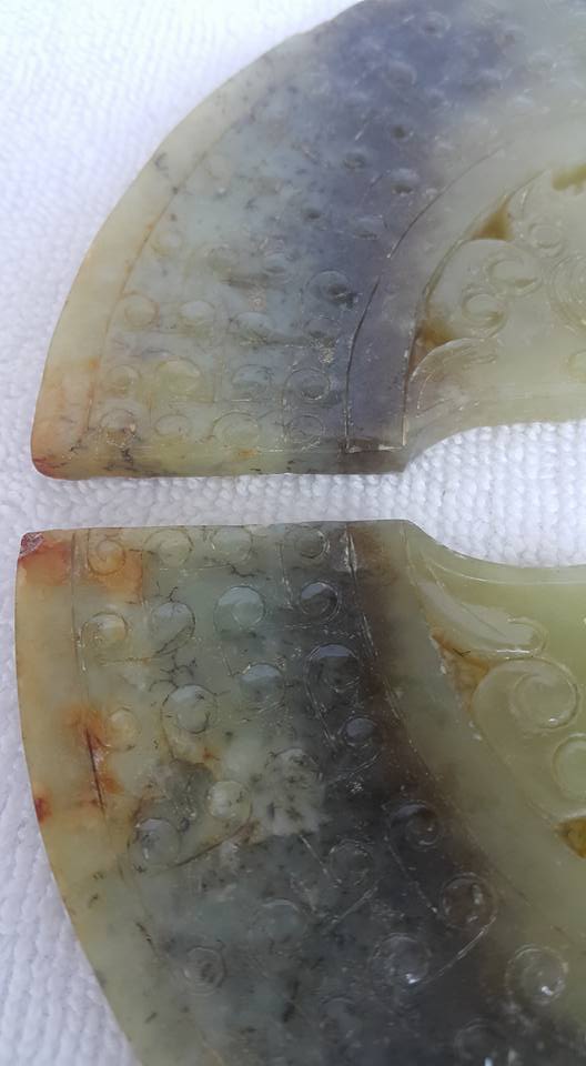 戰漢、蒲紋双龍首青玉璜、S龍人青花玉佩