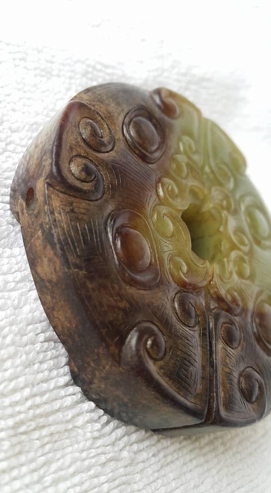 春秋玉器、龍首紋璧、和田黄玉