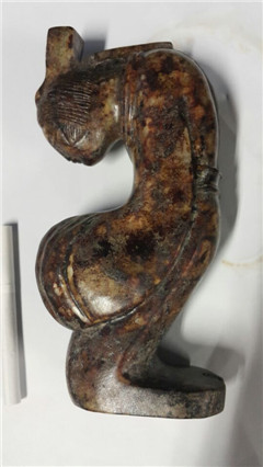 從受泌的皮殼有冰裂紋上分析 應是火葬之明器-玉俑.