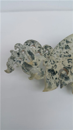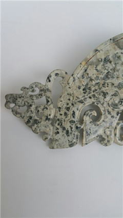 戰漢、出廓式玉璜、、和田青花玉、、玉璜在中國古代與玉琮、玉璧、玉圭、玉璋、玉琥等、被、周禮、一書稱為是六器禮天地四方的玉禮器、六器之中的玉璜、玉琮、玉璧、玉圭等四種玉器、歷史最悠久、早在新石器時代就己出現、至戰國時期己較前代同類器而言、戰國玉璜的形制與藝術風格均發生劇烈變化、不僅數量衆多、形式繁雜、流播地域更為廣泛、還出現了出廓式、縲空式、層壘式、分節套合式等、諸多精美絕美絕倫、巧奪天工、本館將陸續展示戰漢時期的楚式玉璜風格紋飾、其精彩的紋飾和富麗的形態真正讓人嘆為觀止、