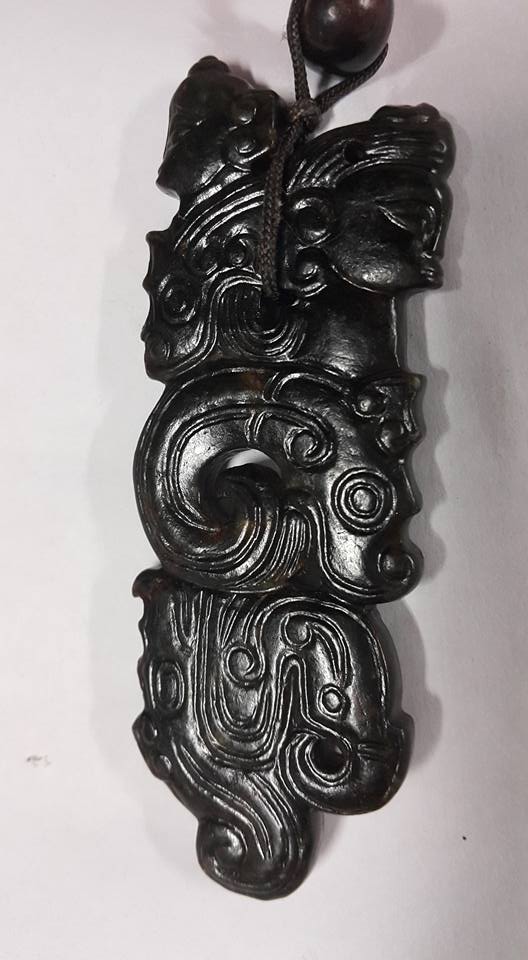 此件以双人頭和三龍一鳳合體的玉佩,其寓意是人當為巫之神人,
