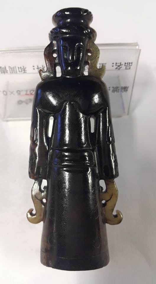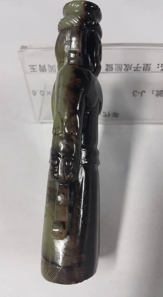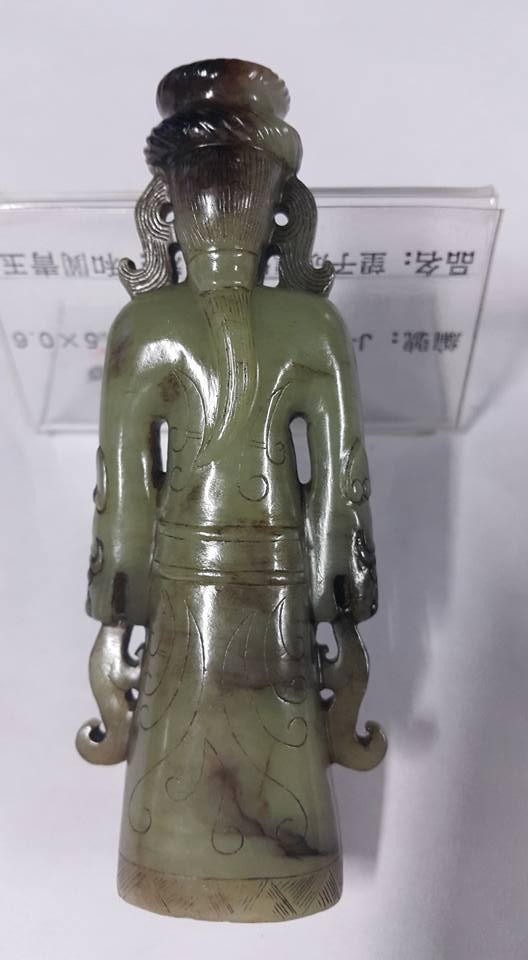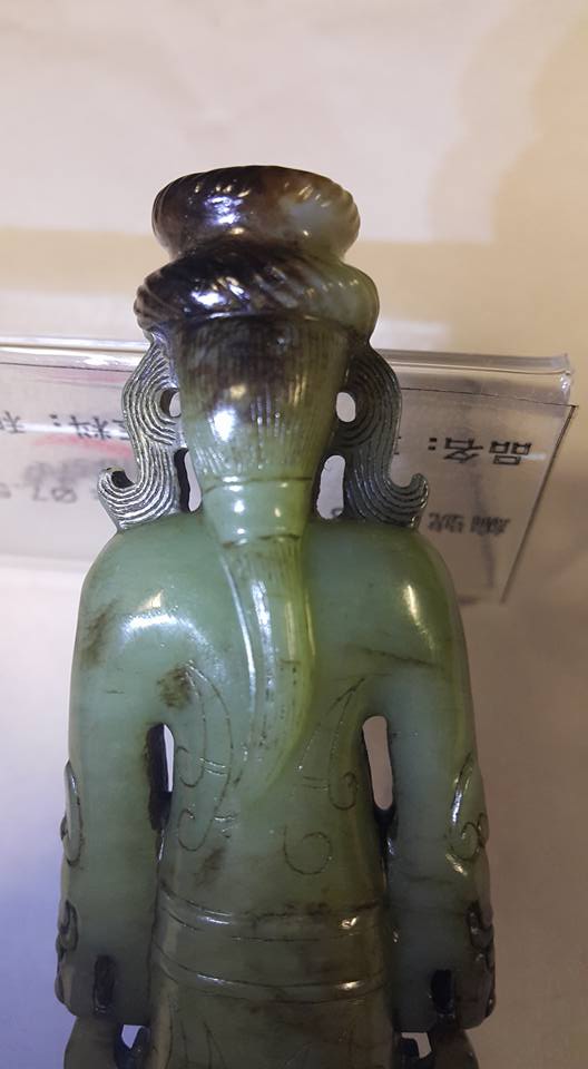 此玉俑仍和田青黄玉彫琢而成,一邊受水銀泌極深,其游絲毛彫工深受當代玉匠所慣用。