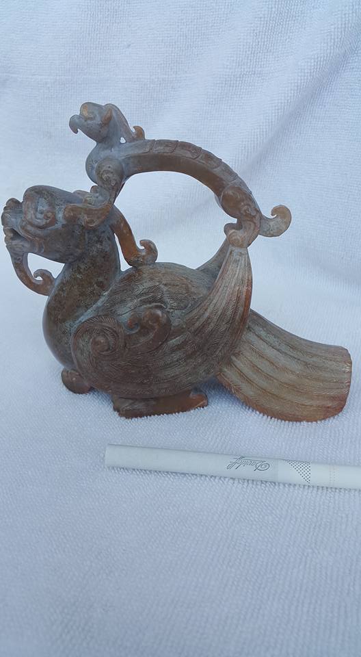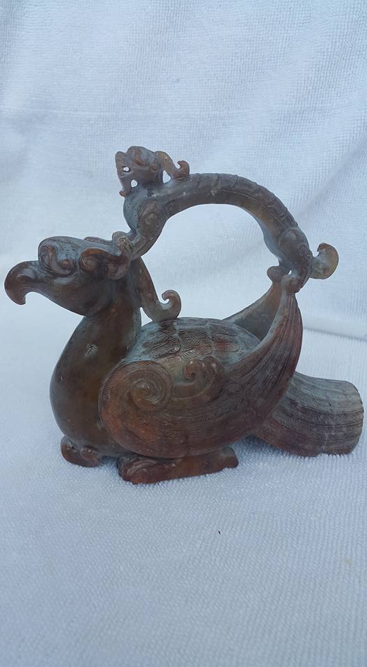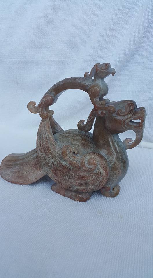 漢代以前玉器一直是皇家貴族的專屬玩物、而在王族交誼之間也常以玉彫來代表其對主人的身份和地位的尊崇、本館今日所展現的這對以和田玉彫琢而成的龍鳳彫件、在物件臉部展現父祥母慈的全家合樂表情、應是送禮之人對其主人的奉承之意吧。