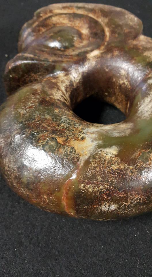 從這兩件玉器的琢磨痕跡看來、紅山系的中、早期玉器應以純手工琢玉為主、而那似平非平、似圓非圓、似直非直的線條、應是其特色吧。