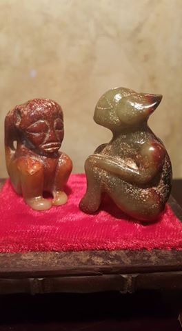 遼河流域文化傳承3千多年、地城之廣和年代之久堪稱歷代之最、、而有些地方以父系為主、但母系社也不在少數、如今展出這對紅山男女玉彫、從形態上可看出女性抬頭之姿和男性一臉衰相的表情、可見當時當地應是女性當道。