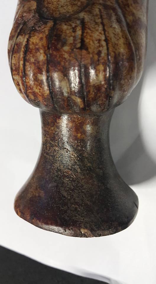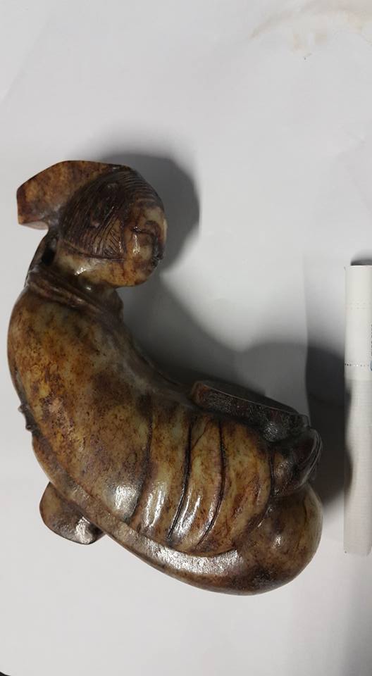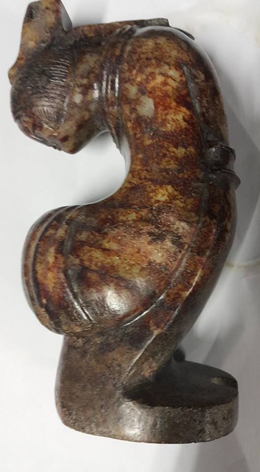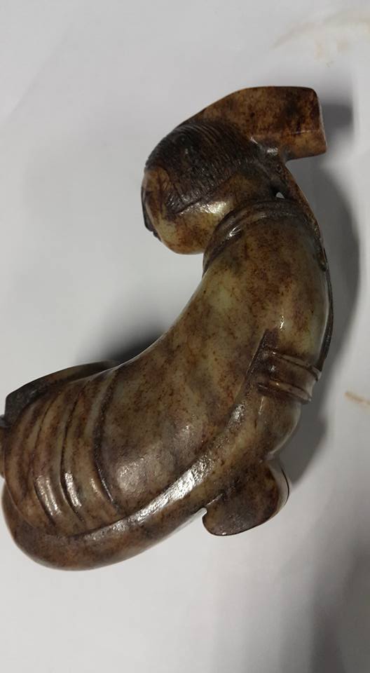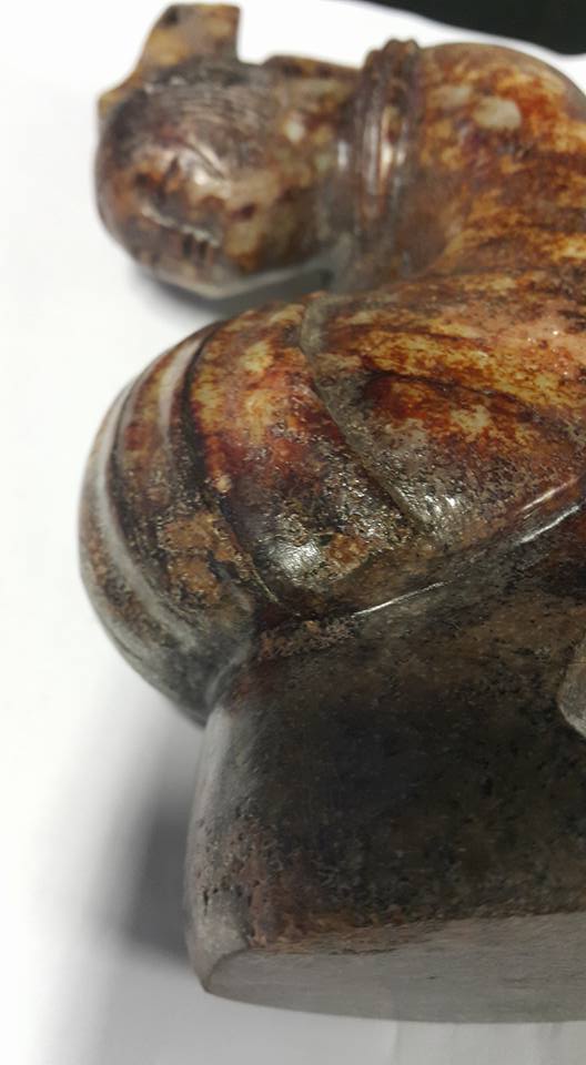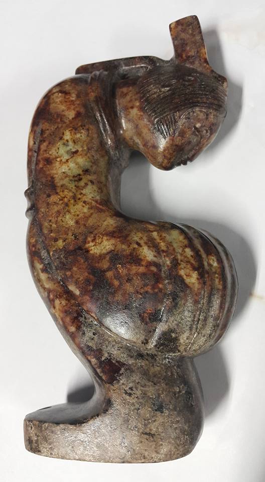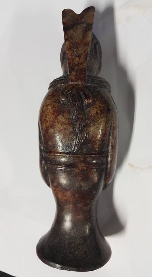 今天本館將連續幾天展出唐代、玉侍女之佳品、此組侍女玉彫共5件、每件的侍女所展現的姿態、充份表現唐代的宫女對作事的拘謹和日本古代女侍之動作極為相似、故傳說日本在唐朝時期將少男少女送往中國學習、俗稱、、遺唐使一說、由此套玉侍女中的形態和服式看、應是歷史的見証、此套本館珍藏的、玉侍女、從受泌的皮殼有冰裂紋上分析 應是火葬之明器玉俑。中國史記、從春秋戰國開始、在西部地區就己出現火葬習俗、至漢代佛教從印度傳入中國後、因佛教推行火化習俗、固火葬在中國才普遍傳開、尤其唐代禮佛之帝王甚多、故火葬在唐代的出土文物中是較多見的。