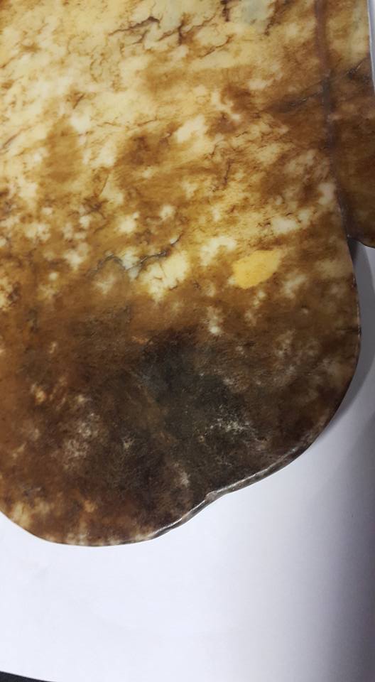 此件白玉面佛、從形制、工法、泌色看來、應屬唐代面佛、其用料以和田白玉彫琢而成、面佛輪郭展露喜兑之情、那眼部以簡易的斜刻法、更突顯能穿透人心之感。