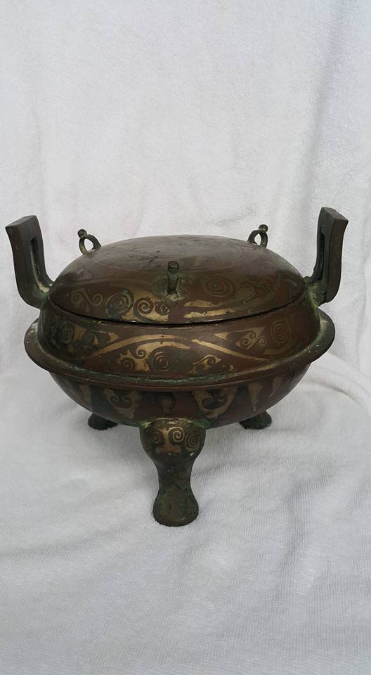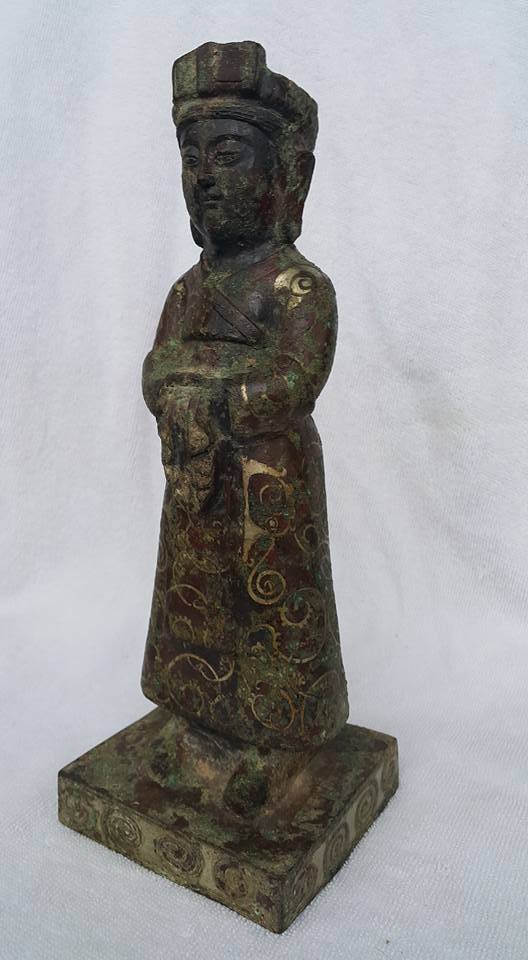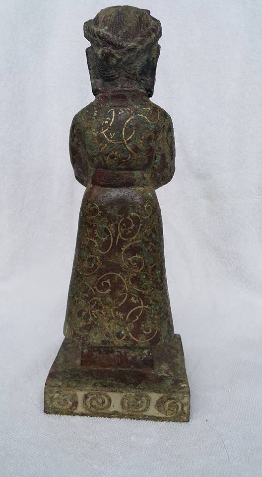 華夏文明在商早期就出現青銅器、前期是以祭祀和實用器為主、至戰漢以後開始用以擺飾和裝飾為主、故在表面的鋶金件也漸流行、所以銅的用料也相對提昇、紫銅的比例高展現在器物上和鋶金搭配更顯其華貴。