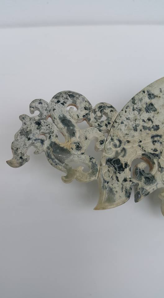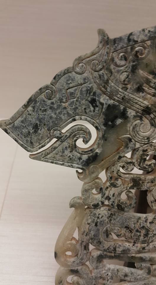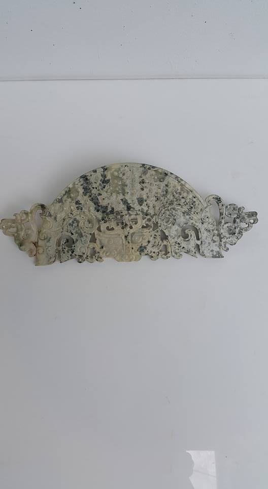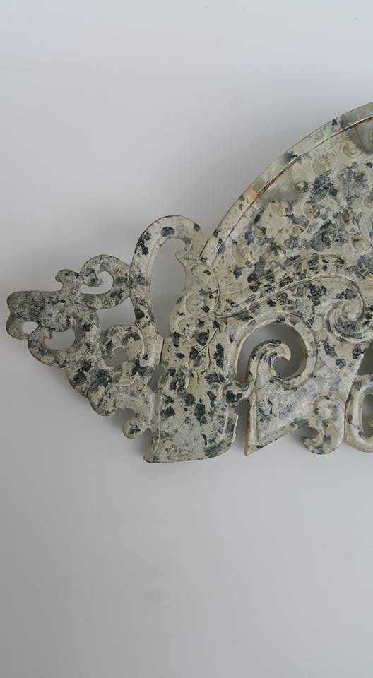 玉璜在中國古代與玉琮、玉璧、玉圭、玉璋、玉琥等、被、周禮、一書稱為是六器禮天地四方的玉禮器、六器之中的玉璜、玉琮、玉璧、玉圭等四種玉器、歷史最悠久、早在新石器時代就己出現、至戰國時期己較前代同類器而言、戰國玉璜的形制與藝術風格均發生劇烈變化、不僅數量衆多、形式繁雜、流播地域更為廣泛、還出現了出廓式、縲空式、層壘式、分節套合式等、諸多精美絕美絕倫、巧奪天工、本館將陸續展示戰漢時期的楚式玉璜風格紋飾、其精彩的紋飾和富麗的形態真正讓人嘆為觀止。