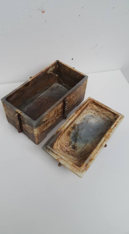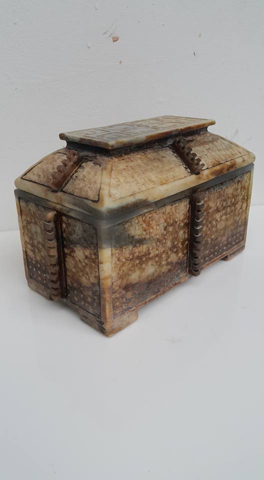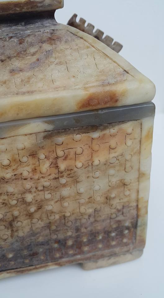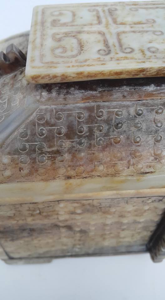 簠、與胡同音、起源于西周盛行于東周、是古代祭祀和盛饗 時盛放黍、梁、稷、稻等飯食的器具、西周至春秋時期以銅器制之、至戰漢時期因琢玉工法工具己能做出工藝精碪的玉簠、供皇室所用、但漢後已不再流行此型制、、此類玉簠出世極少、大陸一位資深藏家曾經藏有一件以碧玉彫琢的玉簠、本館今日展出以白玉彫制而成的玉簠、可稱稀品中的珍品。