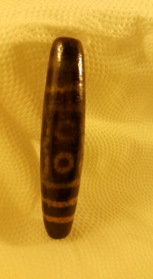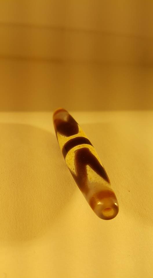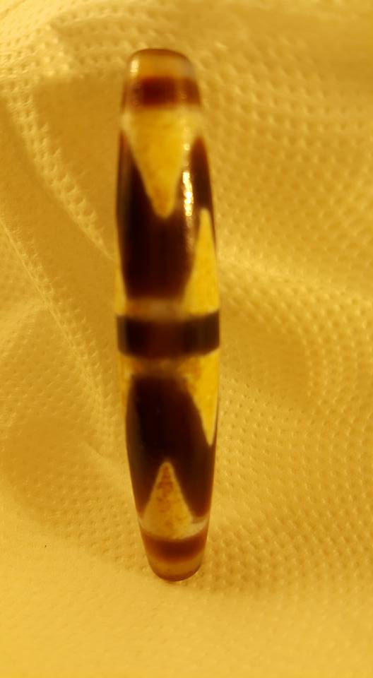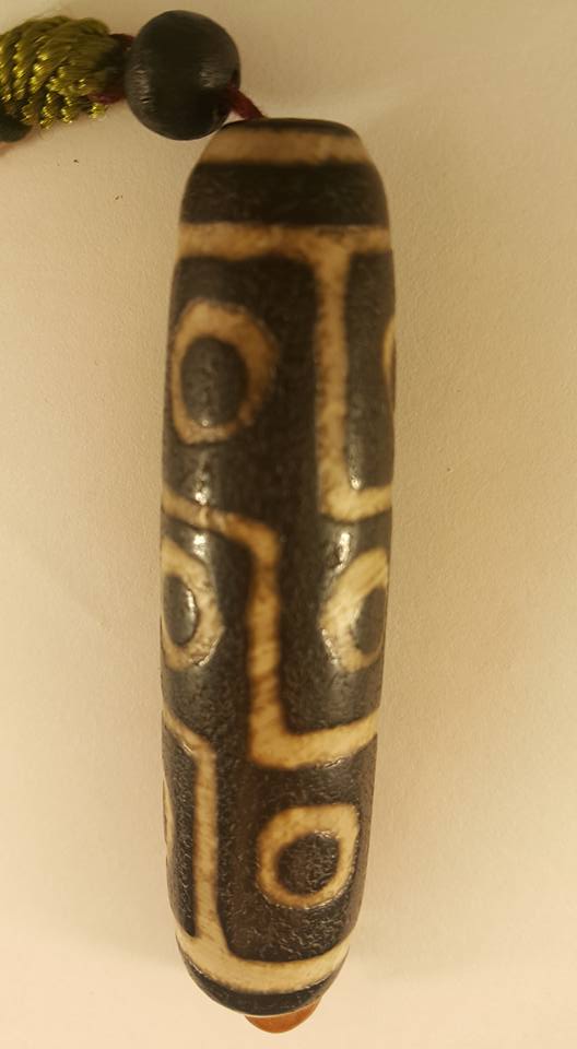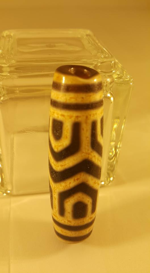 天珠、又名天眼珠、是西藏佛教僧侶視為神聖之物、其充滿神秘的佛教符號和紋飾都代表著某種階層和靈符的象徵。一般來說、天珠無分真假、只能說新作和老作天珠、據傳老作天珠以天然植物精華作為紋飾工藝之輔料、在鑲蝕時間較長、對天珠的制作有別干新作天珠較蝕痕深刻而紋飾持久明顯、而老天珠對後世人所珍惜的另一個主因是、其工藝已斷層近百年、而每棵老天珠都是西藏佛教僧侶将天珠作為一種吉祥物配帶、同時也將天珠作為珍貴的物事供奉給自己信仰的菩薩、其代表著是佛教之靈物、是有靈性的、其可安神保平安、又可治百病、故天珠至今在民間被視為宝物是源自有因的。