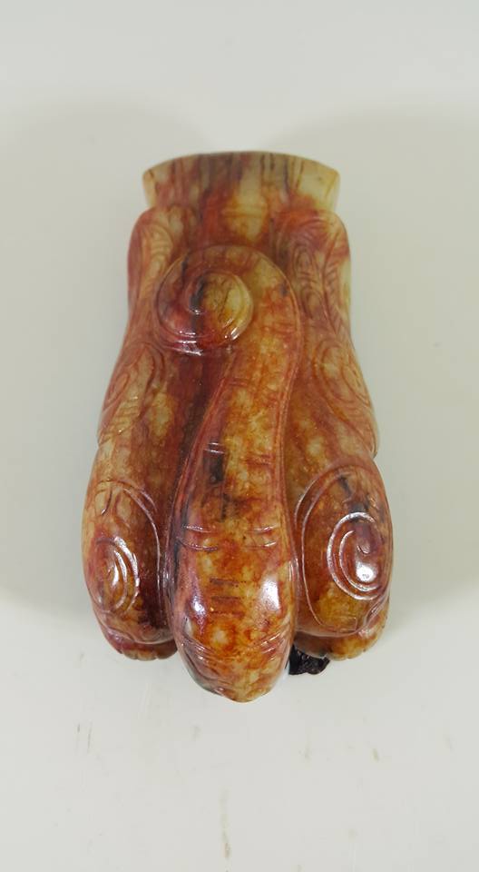 此件以人首禽體之彫件、是商周時期盛行之珮玉、