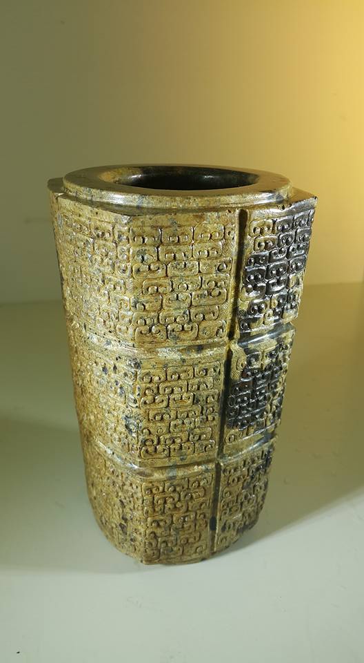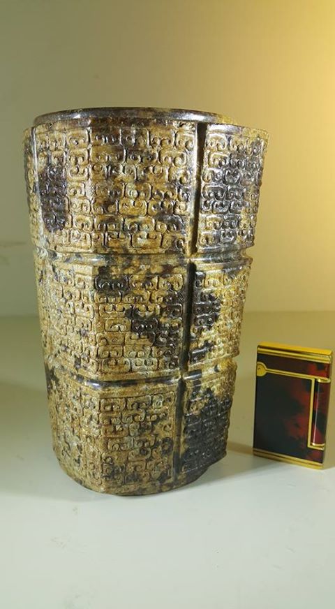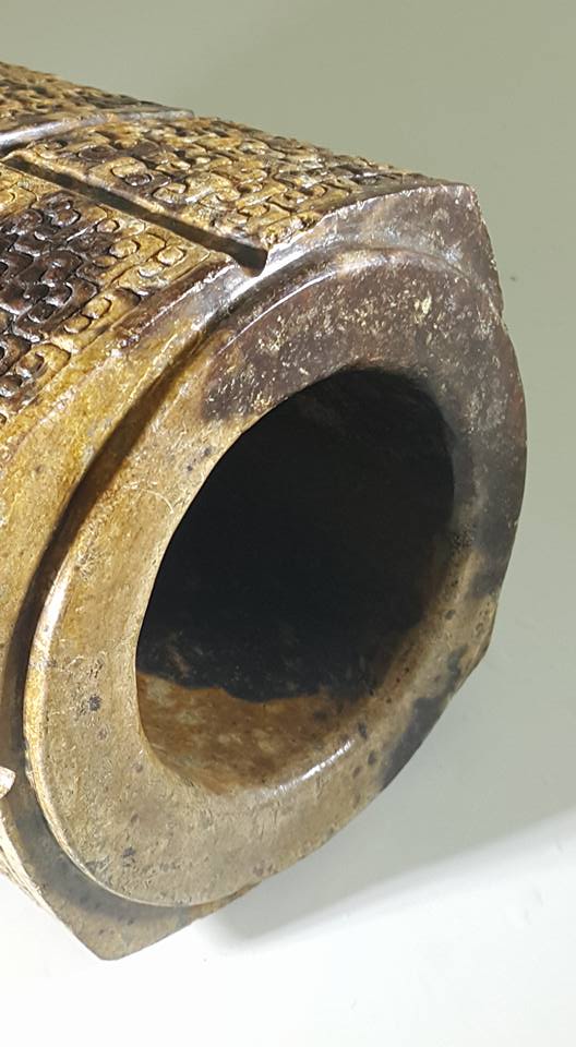 此種現象我們可從今展出這件以不起地陽雕雲紋玉琮上可看出、