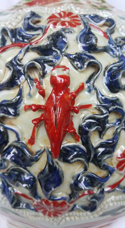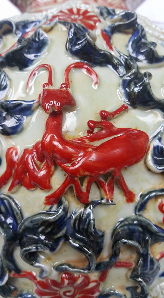 而在元代工藝即己成熟、故享譽國内外、尤其以銅紅料繪底再加上一層清釉燒至而成的釉裡紅、