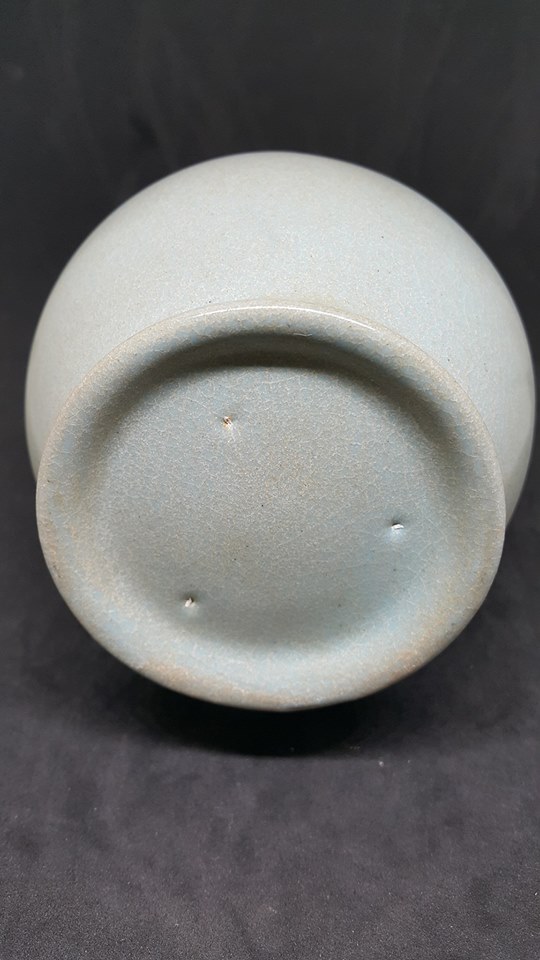 此件汝窯天青釉瓶有一對、從開片和作工應屬上乘、由本會藏友提供和大家共賞。