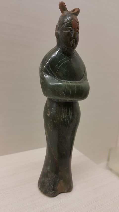 今曰本館展出這件唐代玉仕女、其神態自若大器之風采、完全出自於工匠對人體線條的掌控得宜、