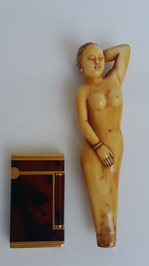 以此人體牙雕像作為解說用具。而這件美人雕像還有一個用途是、烟嘴、