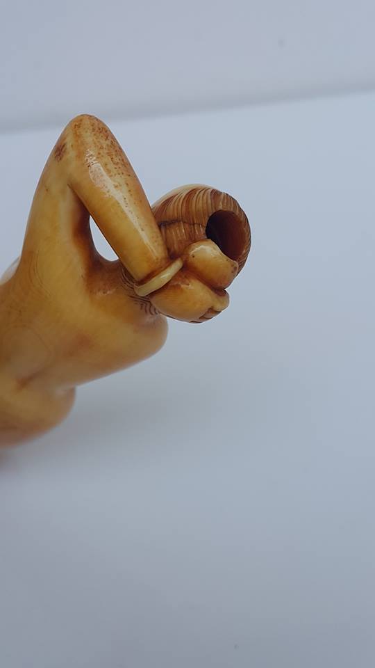 從物件的頭頂至腳底被鑽空被用來作烟斗看來、此物件主人雖是醫生、還是個文雅的烟鬼呢!