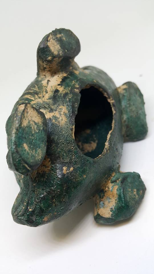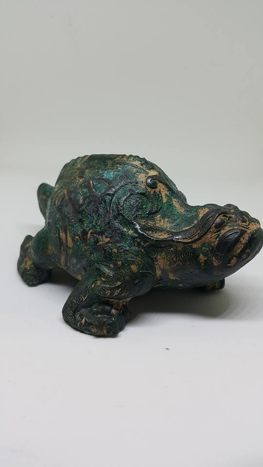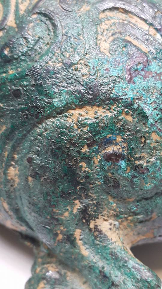 都會呈現在銅銹上、而較常見銹色有、紅班、綠銹、黑漆古、水銀泌等、