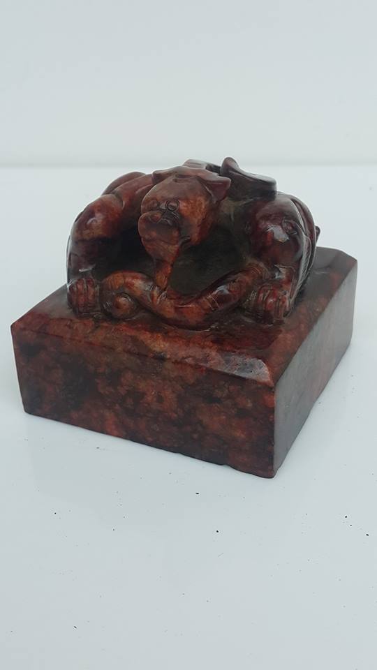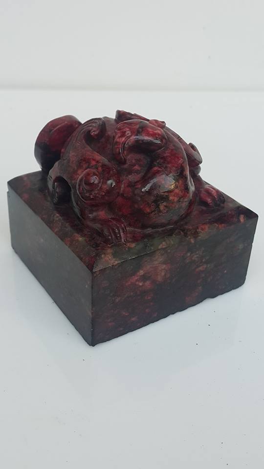 又在兩件玉印所受泌也不一樣、鳳印滿佈朱砂泌、而螭龍印所受的是老紅土泌、