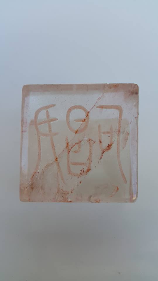 本館今展出這4件西晉水晶官印、全以小篆文刻之、
