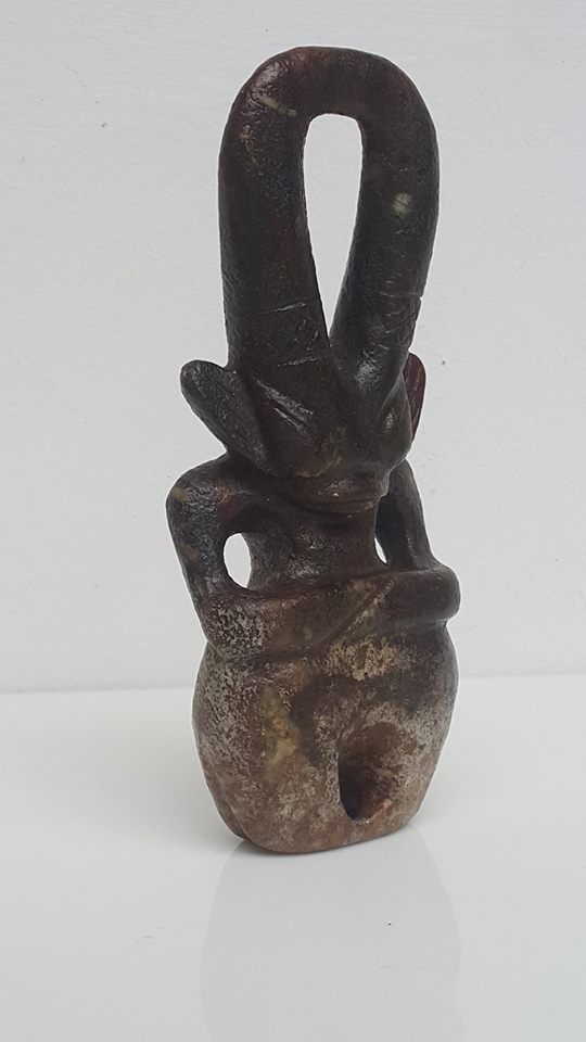 在近年大陸市場出現較多的史前文化玉器、尤以長江流域'的良諸文化和遼河流域的紅山文化玉器為多、各種材質都有、真真假假、讓人眼花瞭亂、但行家們發現、只要以硬料雕琢成器的老玉、其形制和雕工都較好、而識別真偽有幾項特微也是玩家們把關的翹門、一、其整器雕琢工藝特点是平不平、直不直、圓不圓、而表面大部份呈現橘子皮、打孔特徵以牛鼻孔形為多、當然一部份雕件有出現網格紋飾、其双手的擺式和双腳合併膝蹲式姿態、在新仿和到代的工藝只要細心分辨、還是不難判別。