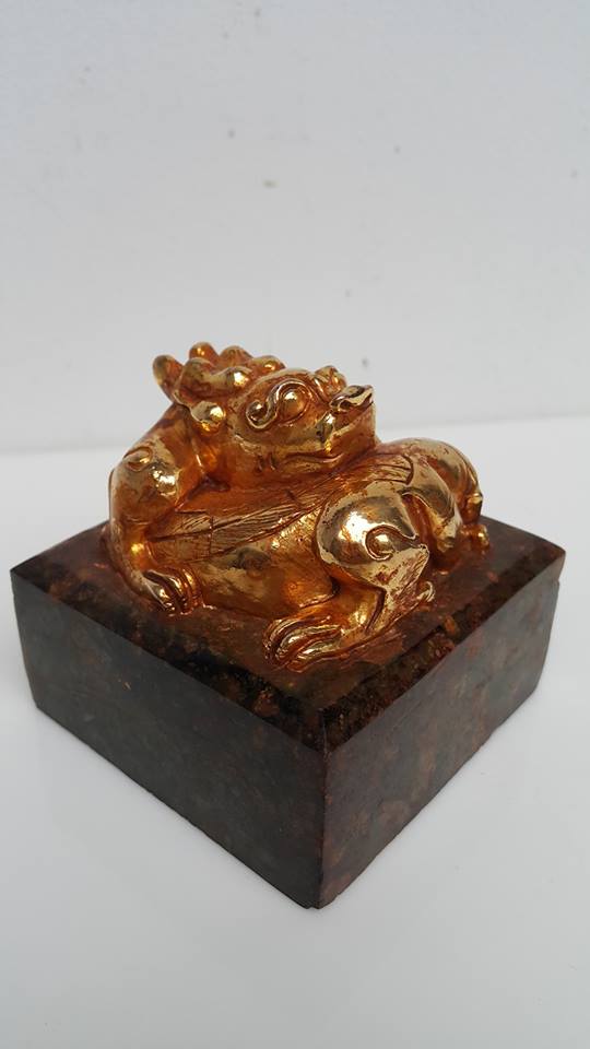 古代的文法和現代的認知上、有極大的落差、如同今所展這件以和田黄玉雕琢的鎏金龍紐方印上、刻著篆文、頗破婆印、翻遍古今資料、並無此号人物、如以物件本身的規格、主人應是當代身份非凡之輩、但此怪異的稱号、為何在歷史上未能留下史記、令人費解。