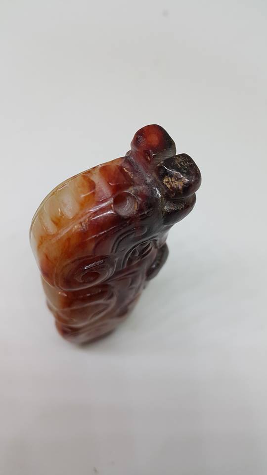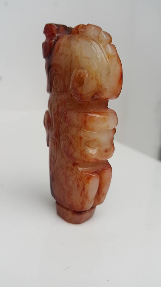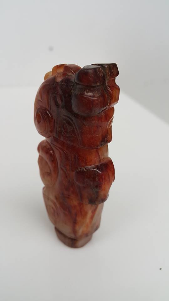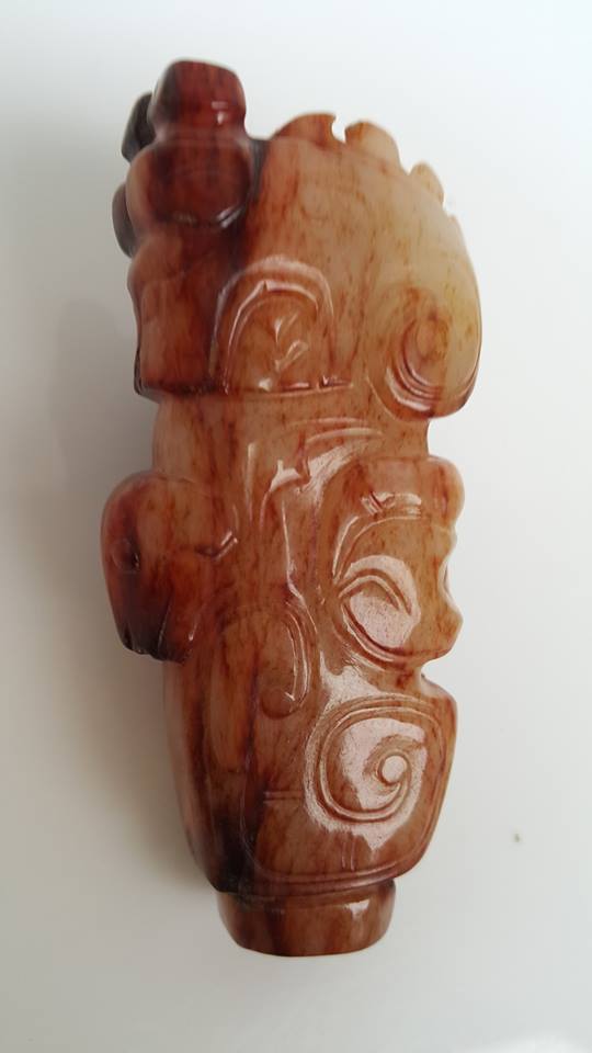 商周時代對人文的認知、從傳承史前的龍文化外、還進化到對人性的探討、如同今日這件神人龍犬玉珮、我們的解讀是人是龍的傳人、而人也是帶有獸性的、固從這雕件上可看出人像另一面是犬之含意、這個解讀不知大家是否同感。