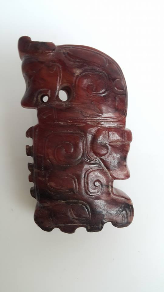 商晚、雙獸合體玉珮、紅玉