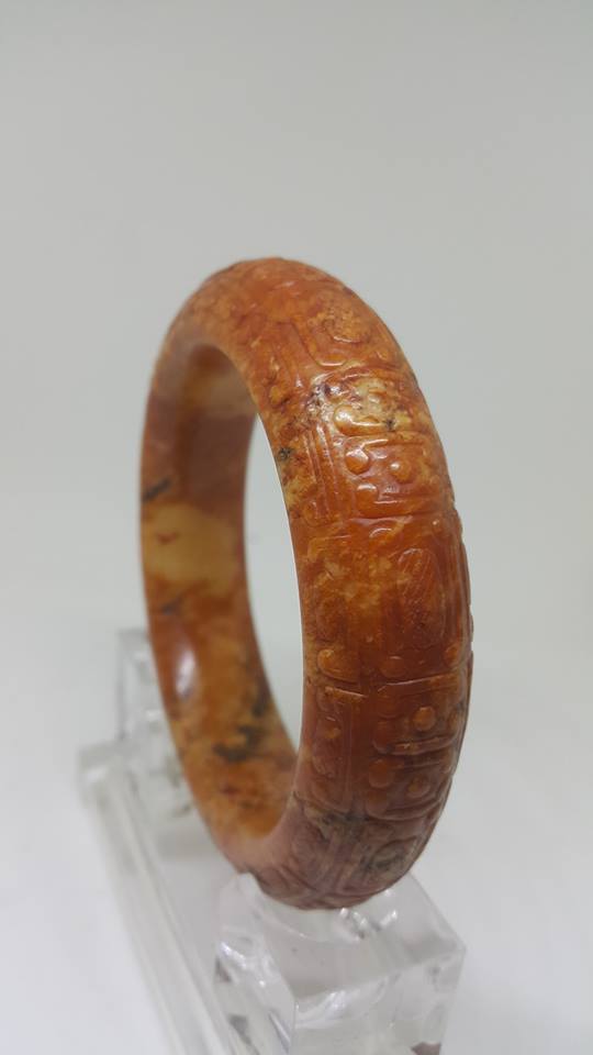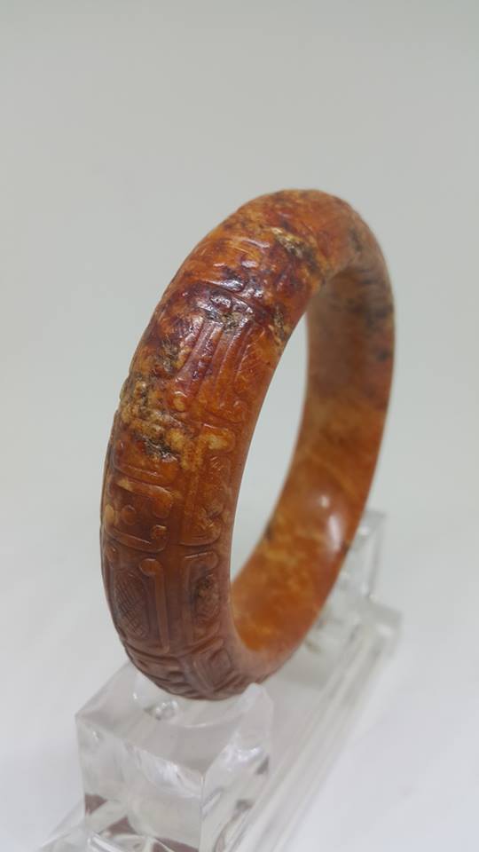 華夏民族愛玉崇玉是數千年來從未間斷的習俗、無論富商名流或王公貴族身上無不以配,帶美玉為傲、而在漢代時期更是有吃玉的習性、可見當代對玉文化的瘋狂。東漢文學家、王逸、也是好玉之人、對玉之美的要求有他獨到認知、而在其、玉論、一書中提到、好玉須、亦如雞冠、黄如蒸栗、白如截脂、墨如漆黑。其論訴也是後世愛玉者追捧的目標。本館今日展出這四件紅、黄、白、墨玉雕件、乃為商代雙默珮紅玉、戰國熟栗黄玉手鐲、漢代羊脂白玉印、漢代螭龍墨玉、勒子、此四件屬出土古玉、故在器物上都有不同的泌痕、雖非沌淨、但仍難掩其天生麗質之感、此四件尤物是否能達到、王逸、之要求、還請大家鑑賞。