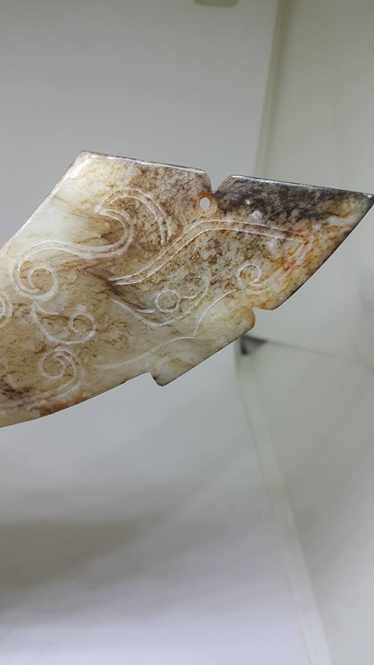 玉璜是一種弧形片或半璧形佩飾、其大小尺寸依據佩用人的身份和系佩的部位而定、玉璜從新石器時代晚期開始、就與瑪、松石等管珠相串連、作為佩戴裝飾之用、西周到戰國時期用玉璜做各種形式的裝飾品最為盛行、從本館今日所展這套九璜玉佩組、其紋飾以龍紋飾之、又以代表至尊的九片成套玉璜作為玉佩飾、其身份應非一般王者所能佩戴、。固在這年終將至、本館特別以這件尊貴的西周九璜玉佩呈現給好友們共亨、希望它的貴氣能帶給大家來年氣運更興旺、閤家萬事旺旺旺、。明年見、好友'們。