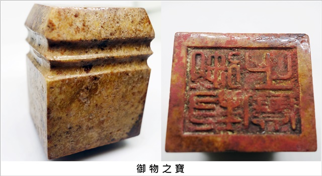 一、御物之寶:帝王專用之寶印。一般用於皇室珍藏貴重之物上,以示為皇家之物。