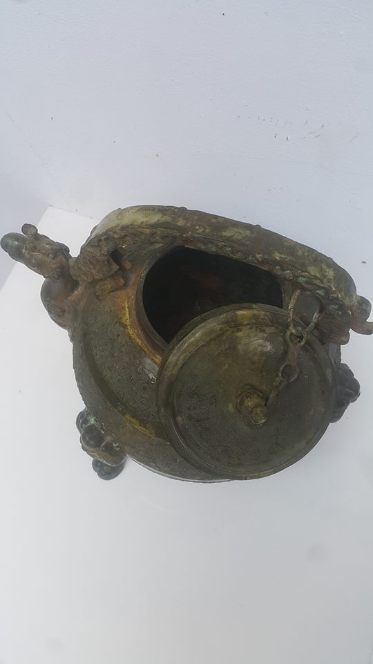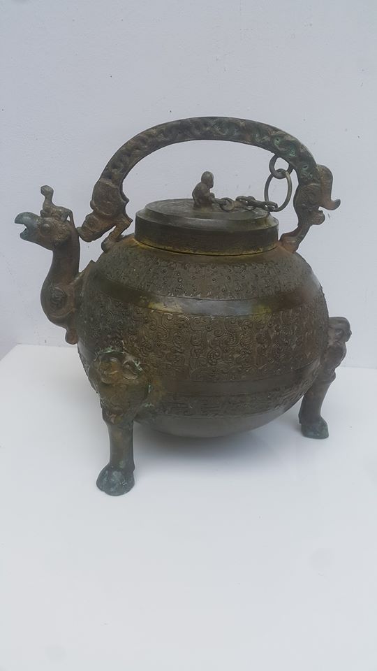 春秋、鳳紋禽獸神人三足盉、青銅器