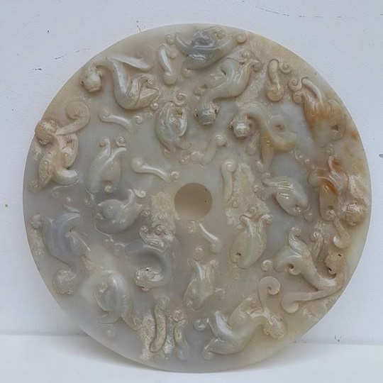 雲龍璧形制盛行於兩漢時期,是王公貴族中常見的玉飾件。而九龍的定義,自周文王以九鼎定九卅之後,九、從此就代表著至高無上的王者代表。