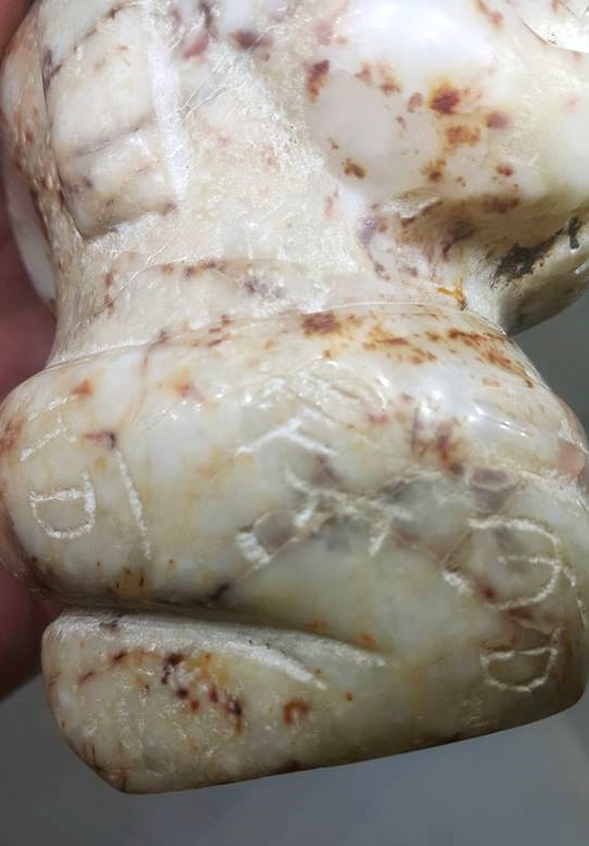 自華夏開國以來、陵墓中以玉人雕像替代真人殉葬之習俗,自古有之,但玉俑上刻有古文字的極為少數。