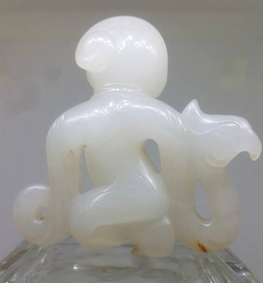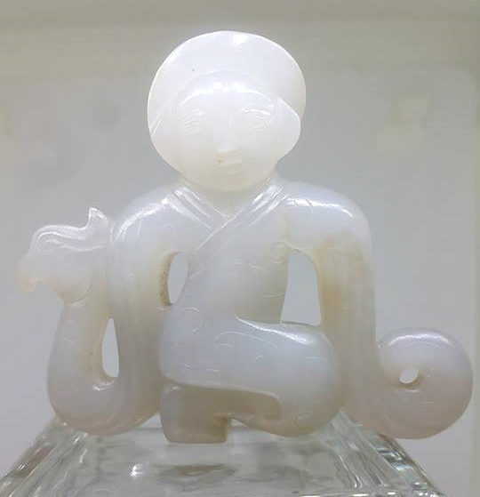 此對以和田籽料雕琢的玉舞人,從型態和工法,應是北宋時期的仿古風潮正盛之產物。
