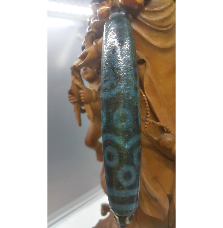 這串稀世的䳡天珠配掛此件綠色十三眼古象雄天珠,可說是青藏的稀世雙寶了。
