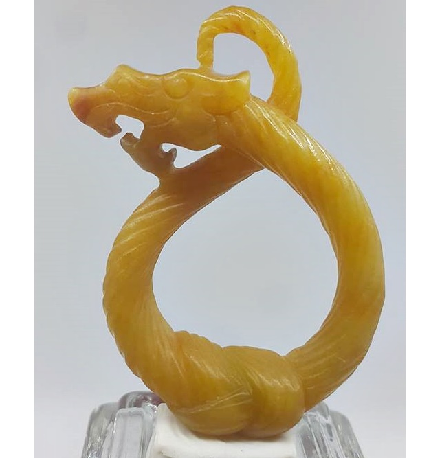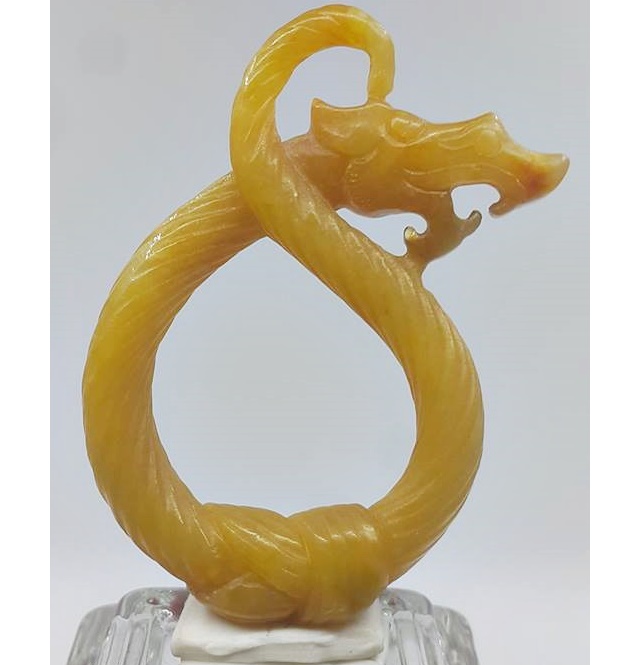 今日所展這件戰國典形器<繩紋龍形珮>工匠採用上等的正黃玉,以精碪熟練的琢玉工法,雕琢出繩紋龍形珮,從這巧奪天工的造形表現,可看出古代人對王者的尊崇是何等境界,從那王氣的展現和翻騰的氣藝,可讓現代的藝術創造者們望塵莫及了。