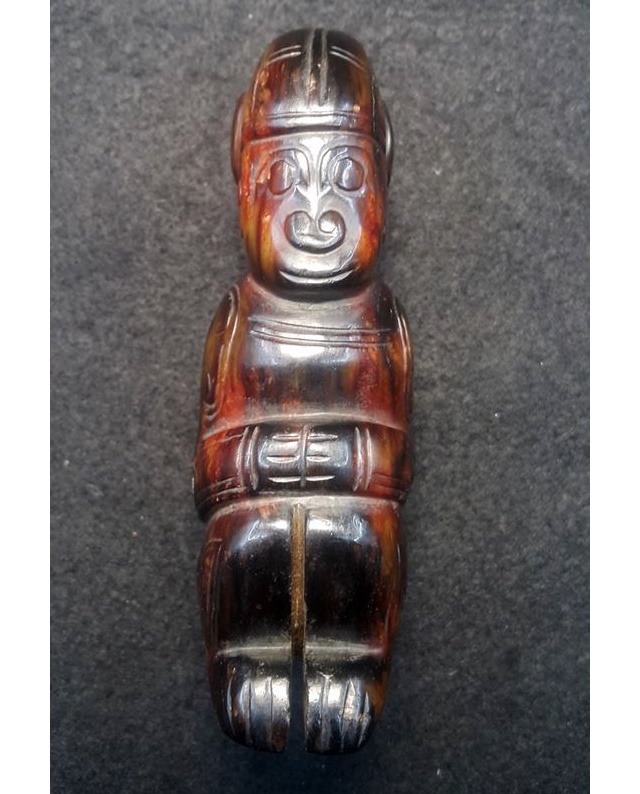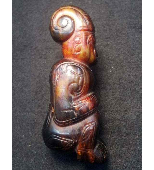 玉俑早在史前文化即已出現,但至商周時期,王朝體制逐漸形成。在玉俑雕琢時,也因階級之不同,其紋飾也是有所講究,如同今日所展這件玉俑全身從上至下以雲紋為主題的裝飾,應是地位極高的身份方能採用。因雲紋從華夏文明的夏代開始,才被具體出現在各式器物的紋飾上,而雲紋最早雛形應是紅山牛河梁文化的勾雲形器,但其表現在整體結構的形成,較為抽象。