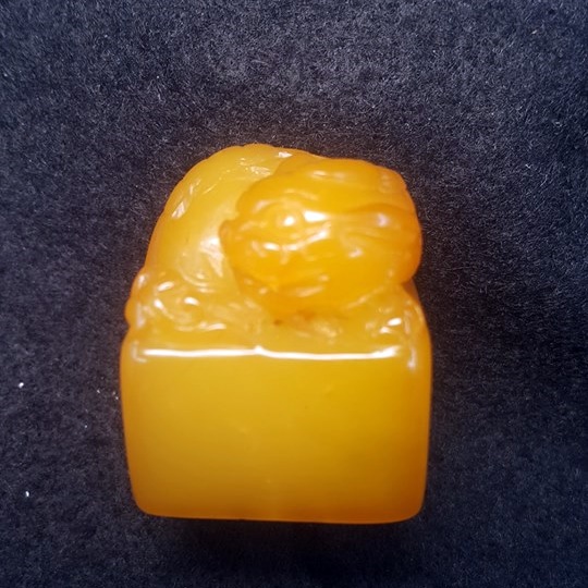 田黃屬田坑石,而田黃凍石是田黃石中最上品。全石通體明透,似凝固的蜂蜜,潤澤無比,諶稱絕世奇珍。