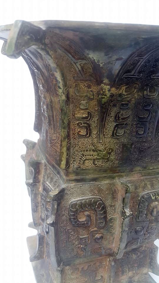 在收藏界中,青銅器一直是藏家心中的重中之重,尤以商、周時期的青銅器,更是可遇不可求,而喜歡這時段的青銅器,應不只是因為它們年代久遠的歷史原因而己,而是從商代開始的青銅器己進入禮器的領域,固其造型紋飾,充份顯露出莊重與靈動之和諧,使整個器物在剛勁中洋溢著活潑,展現出一種生動而優雅的美感。