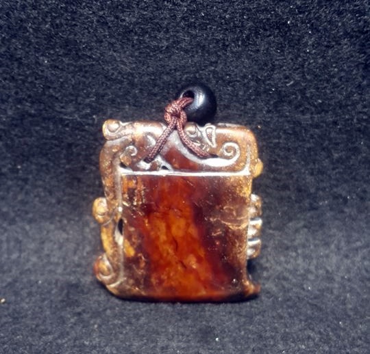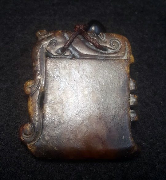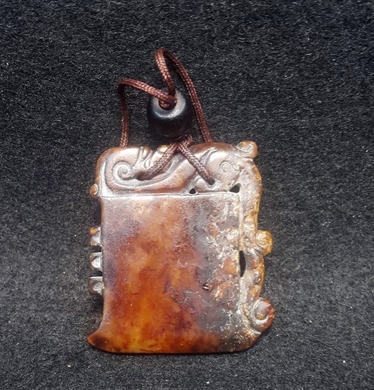 此件明代龍紋玉珮、從器型上表現出其王氣之韻、加上全器受紅土泌、更顯古僕神秘。